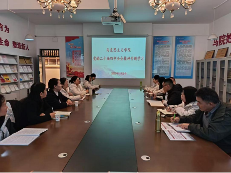 为深入学习贯彻党的二十届四中全会精神,扎实推动马克思主义学院高质量发展,11月6日上午,马克思主义学院召开党的二十届四中全会精神专题学习会。马克思主义学院全体教师参加,会议由党总支书记、院长蹇勇主持。
